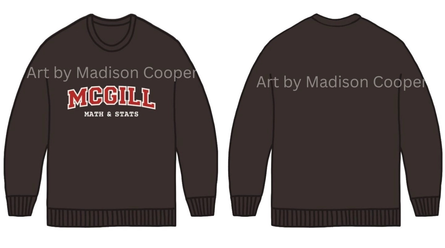 Embroidery design on front, full chest. Varsity font: McGill with Math & Stats embroidered below it. Back is blank