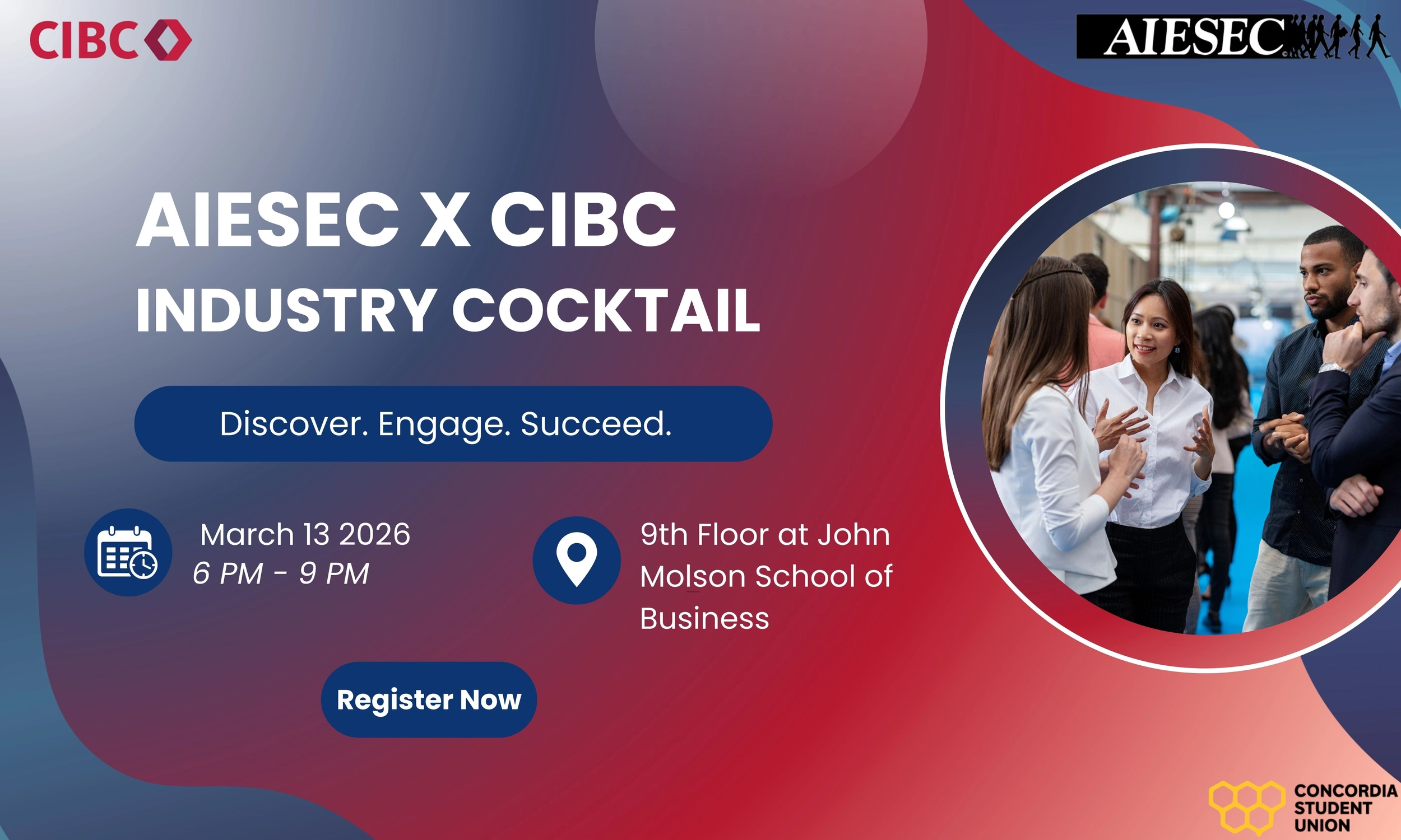 Join AIESEC in Concordia and CIBC for an exclusive industry cocktail connecting students with professionals from across the financial services sector.