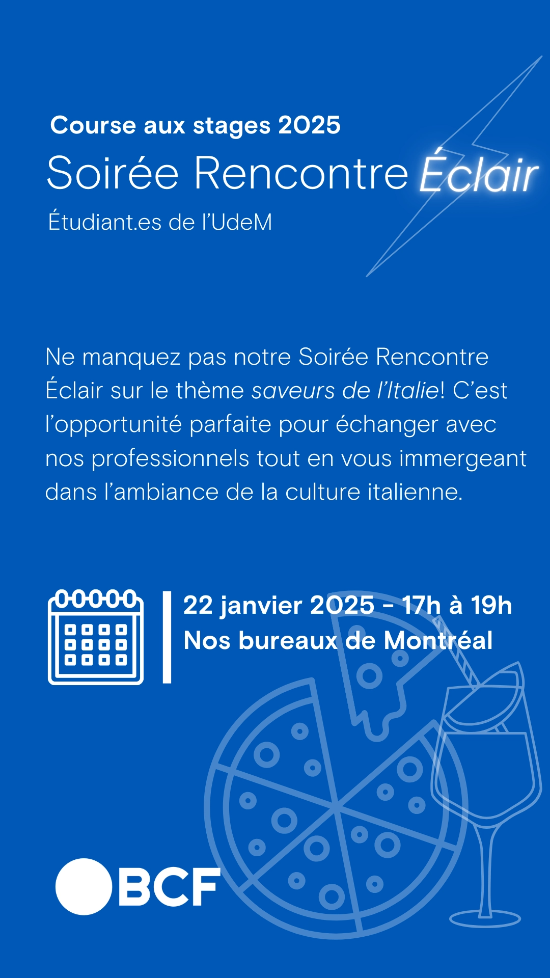 Ne manquez pas notre Soirée Rencontre Éclair sur le thème de l'Italie! C'est l'opportunité parfaite pour échanger avec nos professionnels tout en vous immergeant dans l'ambiance de la culture italienne.