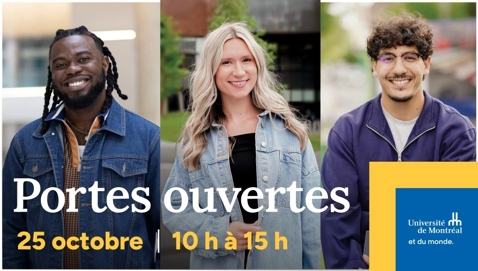 Pour avoir l’heure juste sur ton projet universitaire et obtenir les réponses que tu ne trouves pas en ligne, viens faire un tour aux Portes ouvertes! Au rendez-vous :