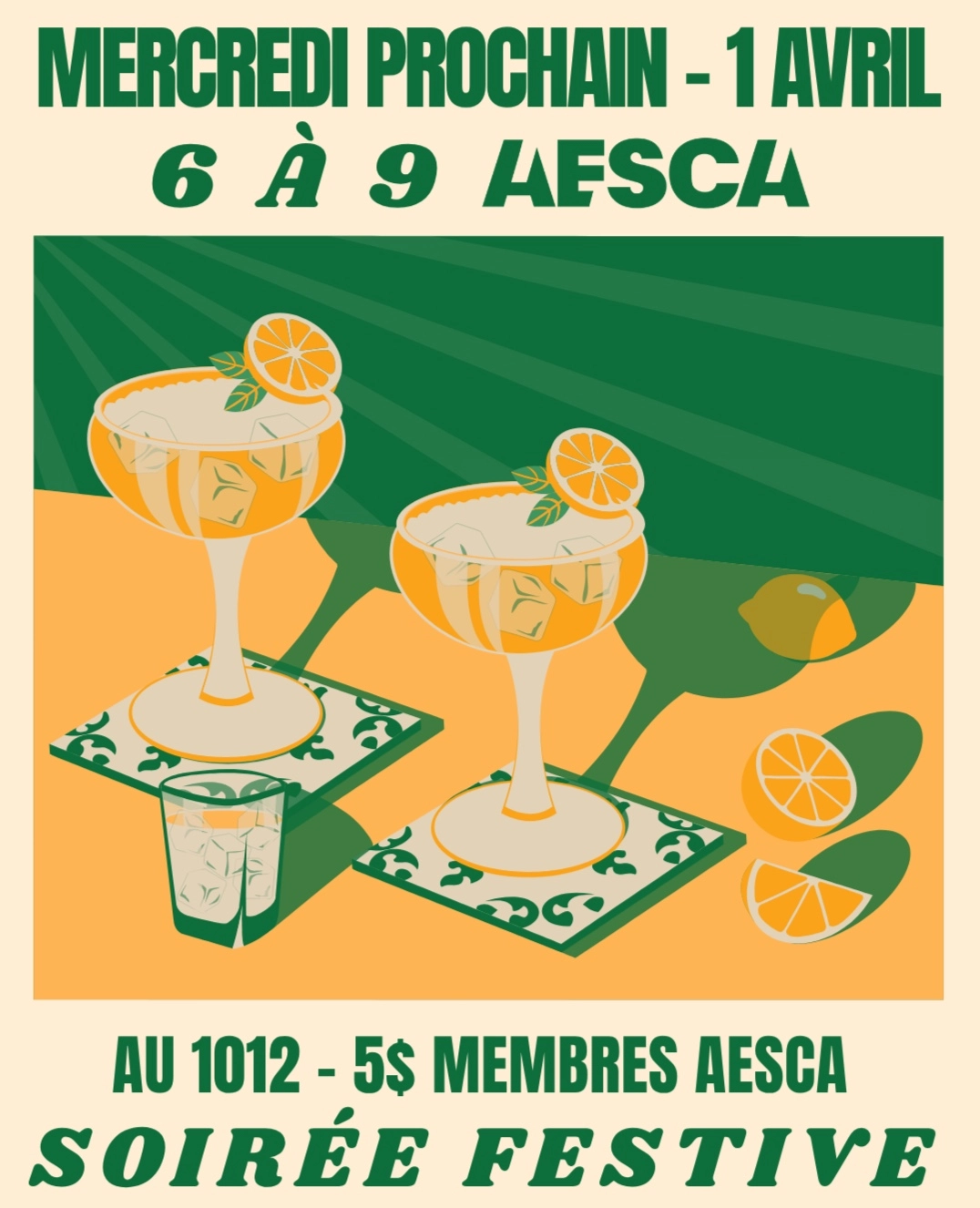 Envie de décrocher après une longue journée et de passer un bon moment entre amis? Joins-toi à nous pour un 6 à 9 rempli de bonne humeur, de musique et d’ambiance conviviale! 🎶