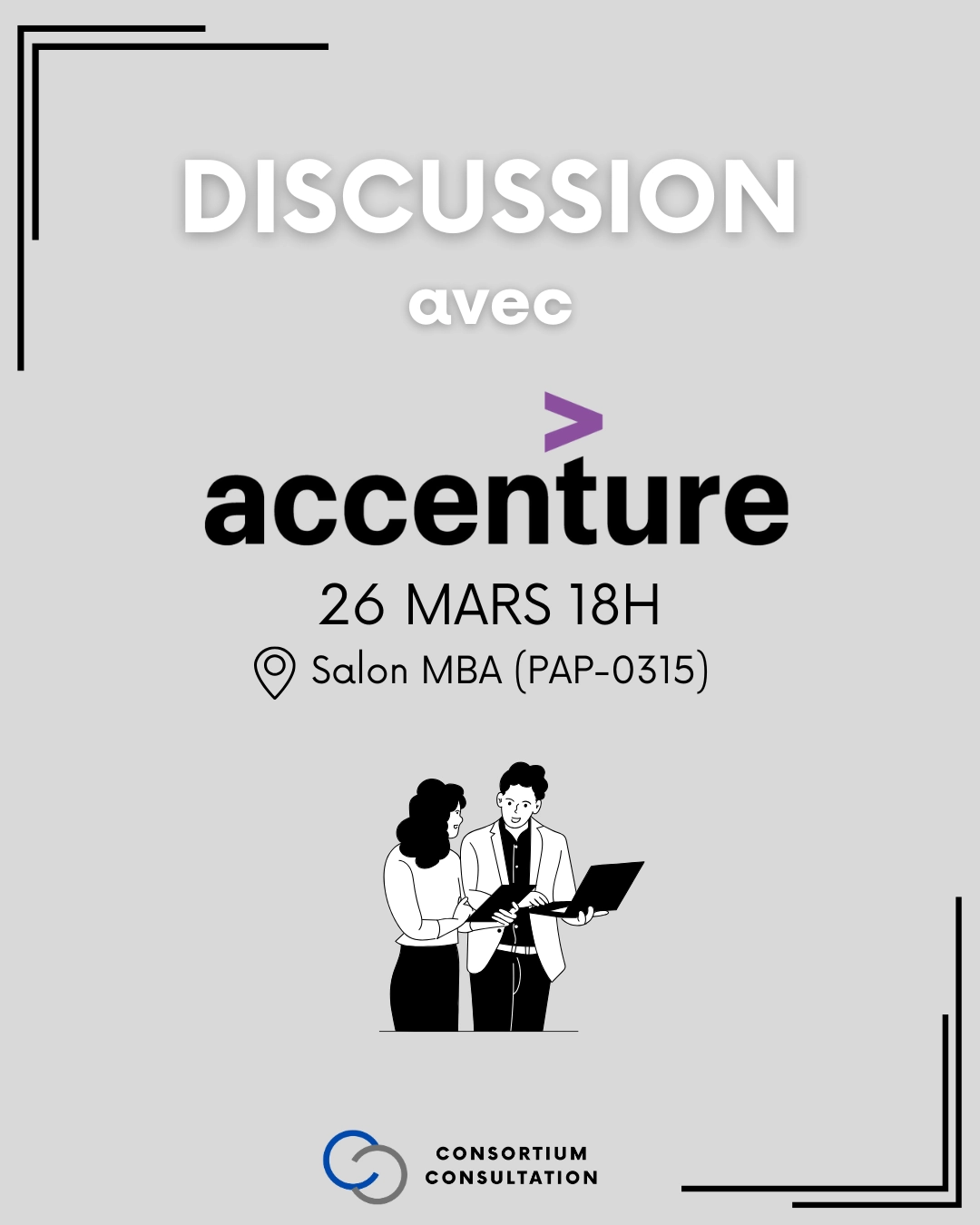 Ce sera une opportunité en or pour toi d'en connaître davantage sur Accenture, de découvrir le domaine de la consultation et de rencontrer des étudiant.e.s avec qui tu partages des intérêts!