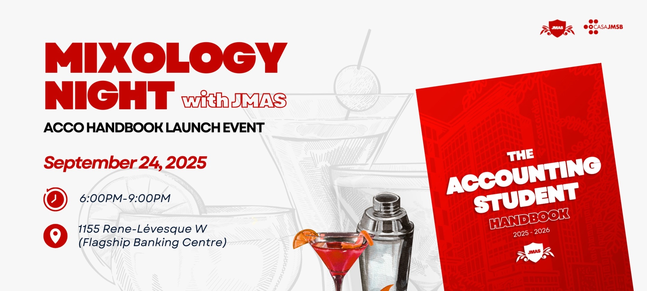 Join us for a mixology class and the launch of the ACCO Handbook! Learn, network, and enjoy a refreshing night with JMAS.
