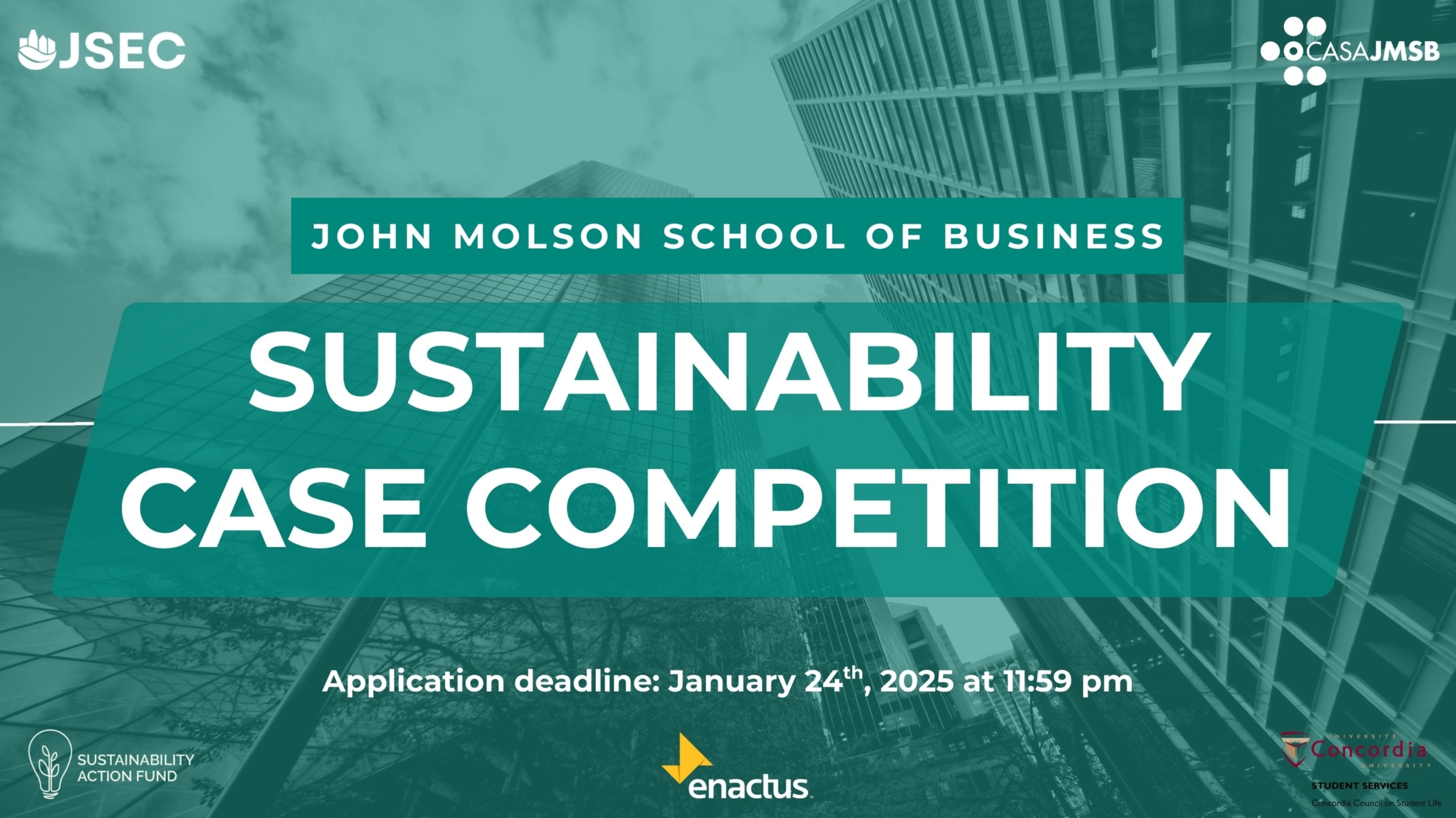 The JMSB Sustainability Case Competition (JSCC) challenges students to address real-world sustainability issues presented in a case format by our corporate partners. Working in teams of 3-4, participants will design innovative, practical solutions and present their recommendations to a panel of industry judges. This experience provides firsthand exposure to real business challenges and constructive feedback from industry professionals.