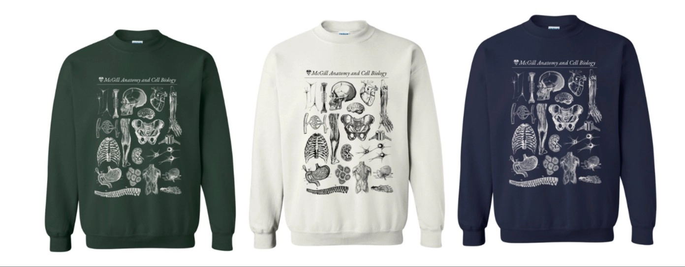 Description: A classic crewneck featuring detailed anatomical illustrations celebrating McGill Anatomy and Cell Biology.