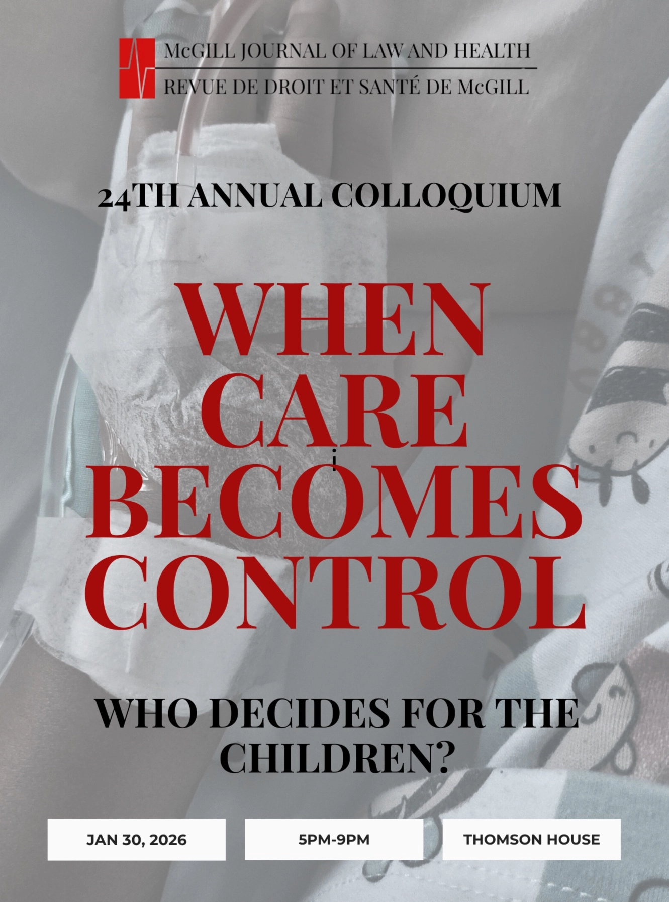 The MJLH’s 24th Annual Colloquium, When Care Becomes Control: Who Decides for Children?, brings together leading scholars, clinicians, and practitioners to examine how Canadian law governs, and at times constrains, decision-making in children’s healthcare.