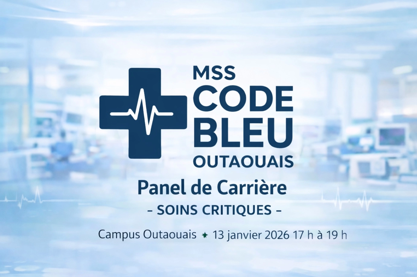 MSS Code Bleu Outaouais est fier de lancer son tout premier événement avec un panel de carrière en soins critiques réunissant des médecins passionnés œuvrant en médecine d’urgence, anesthésiologie et médecine interne avec pratique aux soins intensifs.