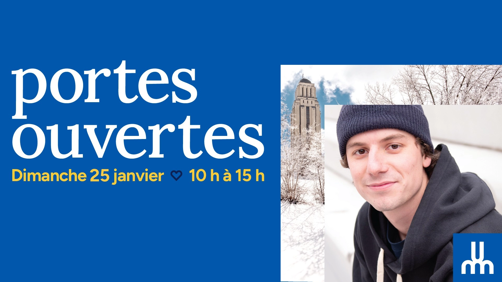 Pour avoir l’heure juste sur ton projet universitaire et obtenir les réponses que tu ne trouves pas en ligne, viens faire un tour aux Portes ouvertes! Au rendez-vous :