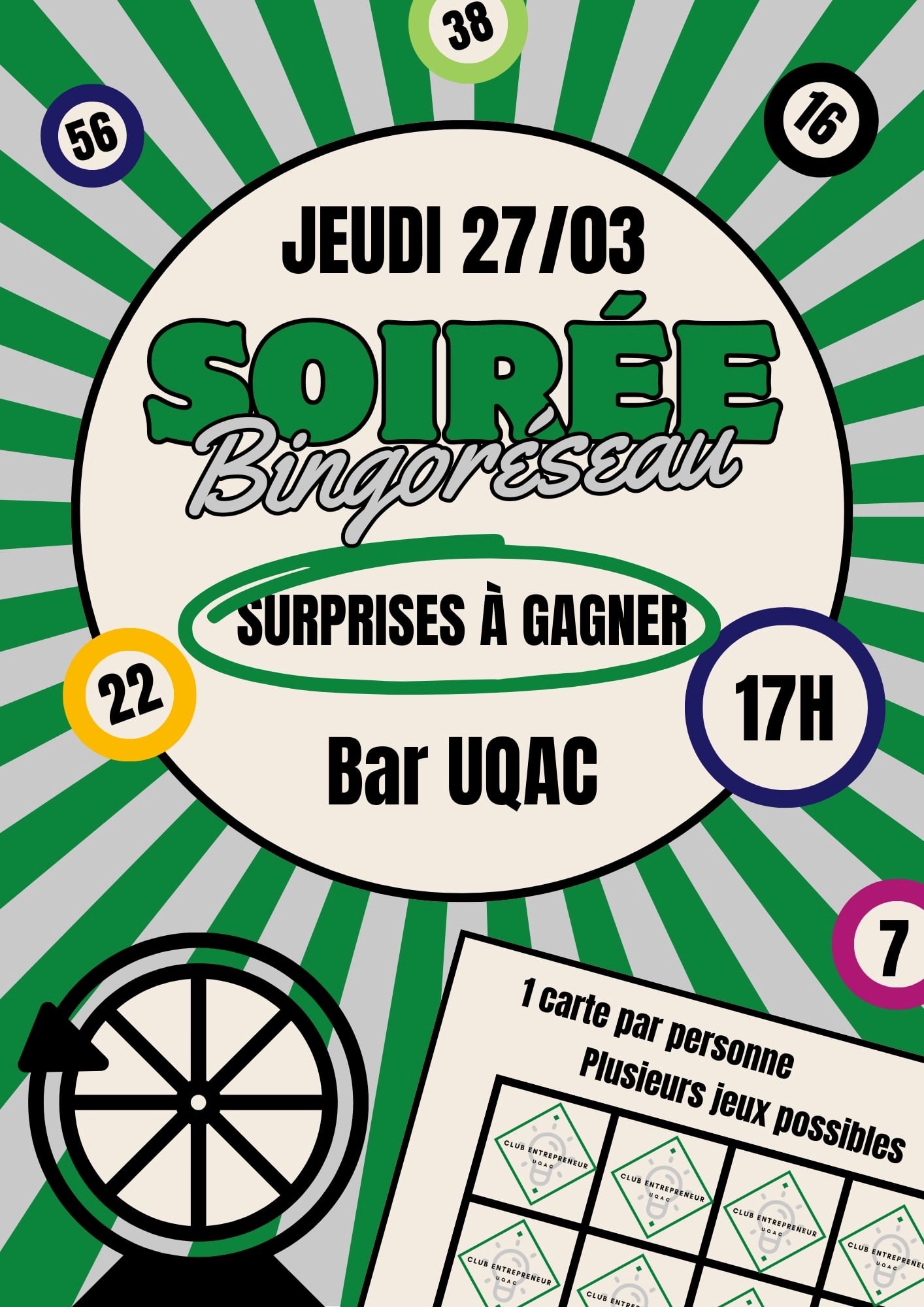 Hey toi ! Tu veux élargir ton réseau tout en t’amusant ? 🎯 Ne manque pas notre Bingo Réseau organisé par le Club Entrepreneur de l’UQAC le 27 mars 2025 à 17h ! 🗓️