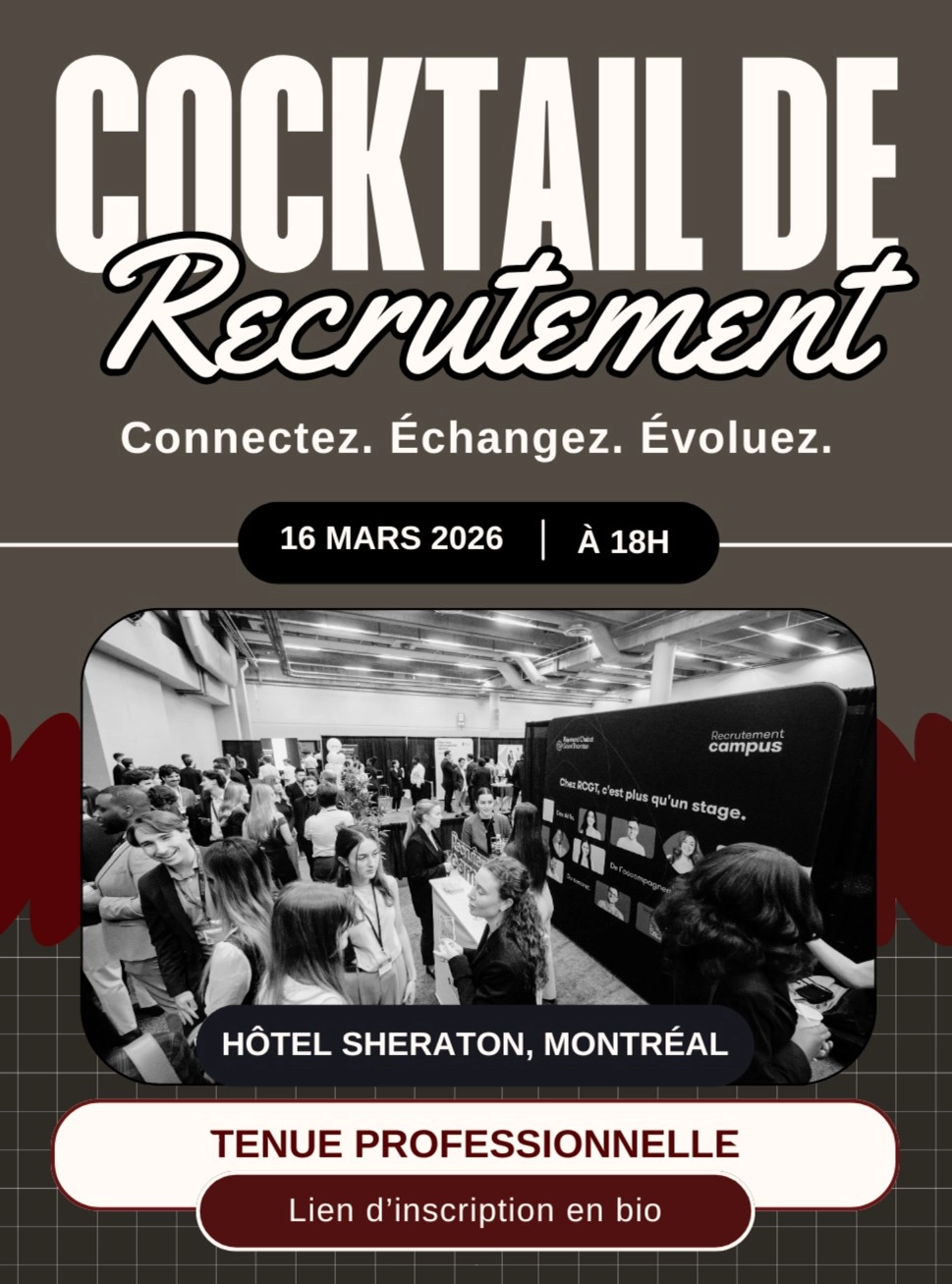Le cocktail de recrutement organisé par l’association étudiante en comptabilité a pour objectif de créer un pont direct entre les étudiants et les professionnels du secteur. Dans un cadre convivial et décontracté, cet événement réunit des étudiants en formation comptable et des cabinets d’expertise comptable à la recherche de nouveaux talents.