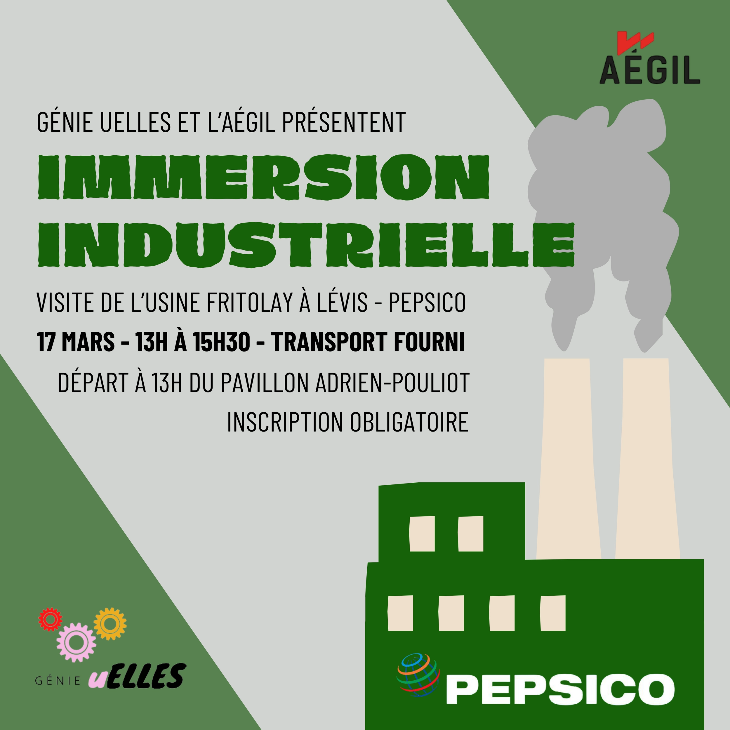 Génie UELLES et l'AÉGIL t’invitent à une visite exclusive de l’usine FritoLay à Lévis pour une expérience unique en immersion dans le monde industriel ! 🔧⚙️