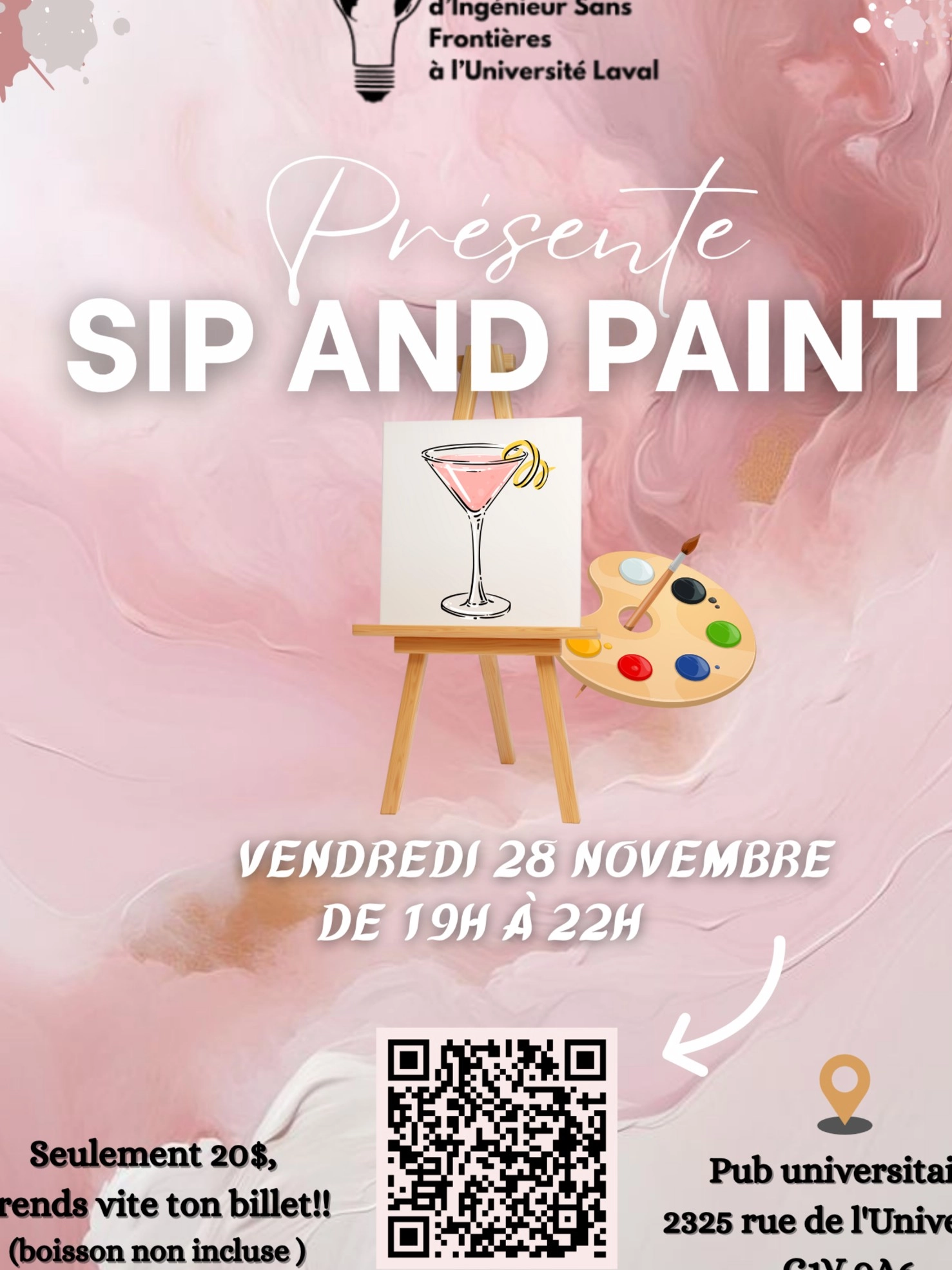 Sors la tête des cahiers un instant et laisse toi emporter par une ambiance détendue, un pinceau dans une main et ton cocktail dans l'autre. Aucun talent requis, juste l'envie de t'amuser et de laisser parler ton imagination.🎨🖌️✨